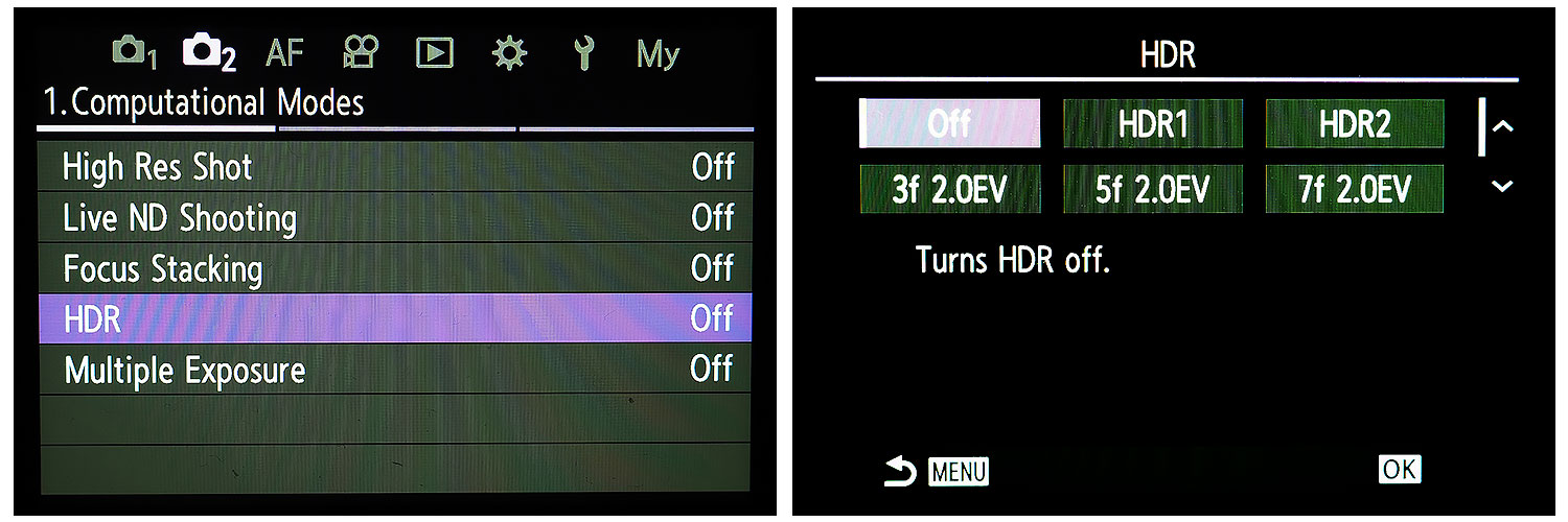 Aynı özellik elbette OM System OM-1 modelinde de bulunuyor. Bu modelde HDR kullanımının menüdeki yerini de böyle görebilirsiniz: