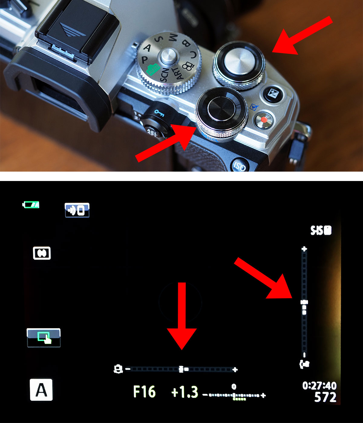 Bu özelliği ON (Açık) konuma getirdiğimizde enstantane ve diyaframı kontrol ettiğimiz tekerlekler yardımıyla yatay ve dikey düzlemde düzeltmeleri yapabiliyoruz. Bu özelliğin etkileyici tarafıysa bu düzeltmeleri yaparken ekrandan da yapılan işlemi canlı olarak izleyebilmemiz.