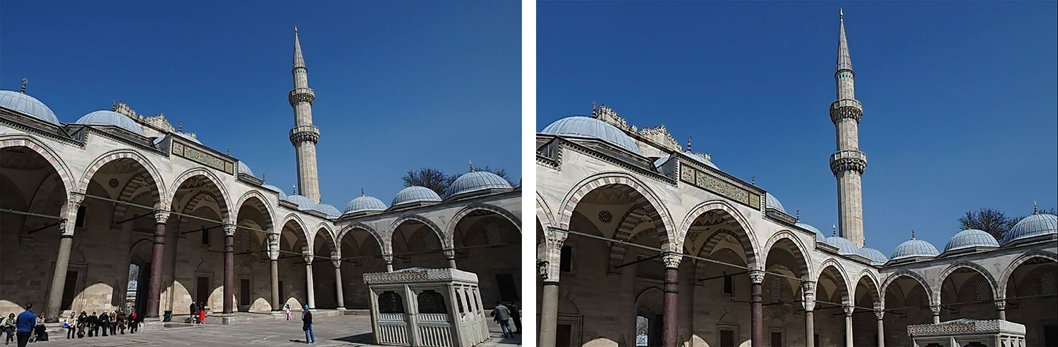 Ancak bir çok çekimde de mesafeler bu tarz çekimler için yeterli olmayabiliyor. Böyle bir durumda hobi amaçlı çekimlerde merkez noktadan çekim yaparken distorsiyonun iki yönden de eşit olmasını sağlamaya çalışıyoruz. En azından simetrik bir bozulmayla izleyici algısını rahatsız etmemeye gayret ediyoruz. Yapının bir köşesinden yapılan çekimlerde deformasyonun etkisi aşırı ve rahatsız edici olabiliyor.