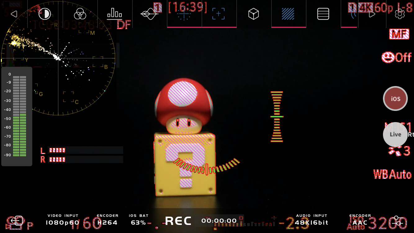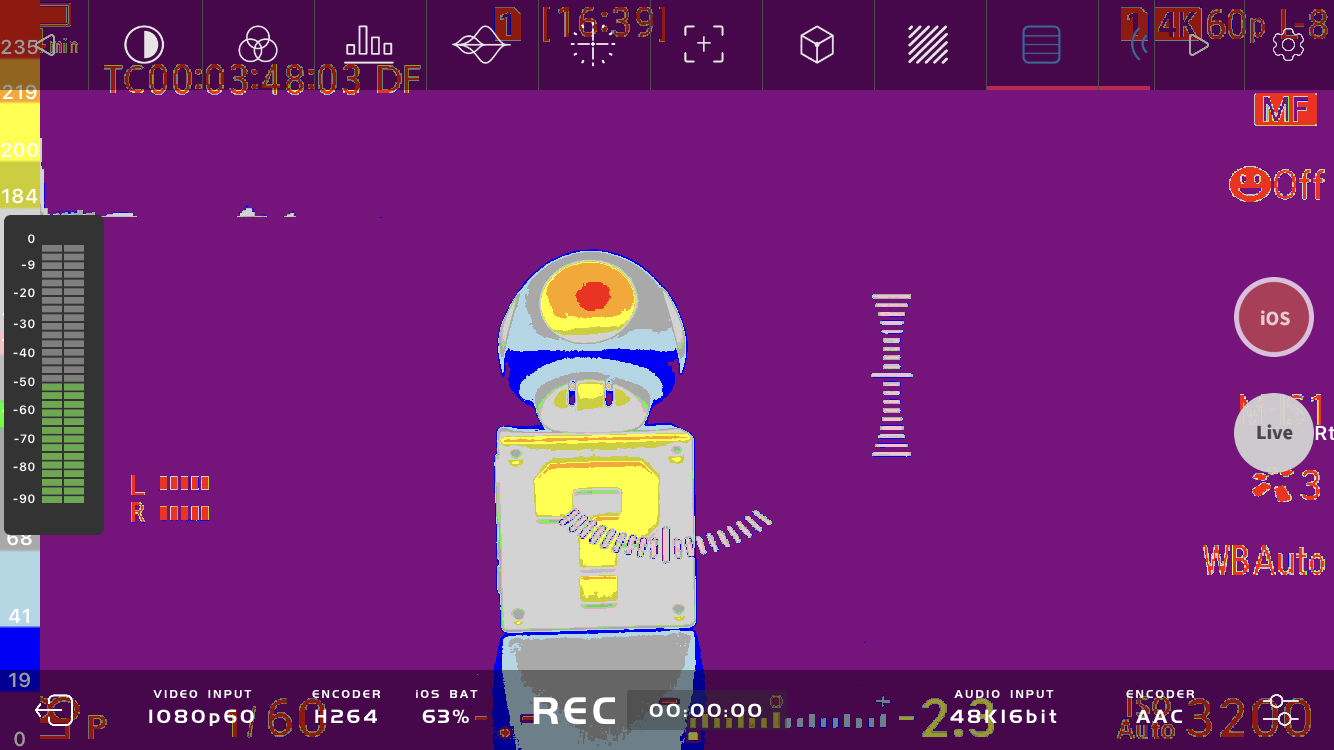 - Sağ taraftaki iOS simgesine dokununca HDMI çıkıştan gelen görüntü 1080p/60 fps olarak cep telefonu belleğine kaydedilecektir.