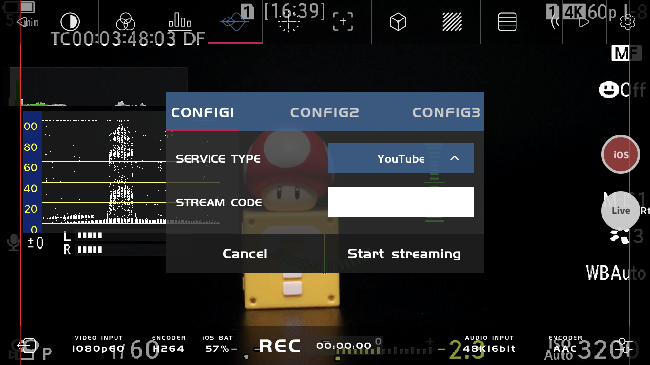 - Yine sağ taraftaki Live tuşuna bastığınızda ise Facebook, Youtube gibi platformlara cep telefonun 4.5G/5G bağlantısı üzerinden canlı yayın yapılacaktır.