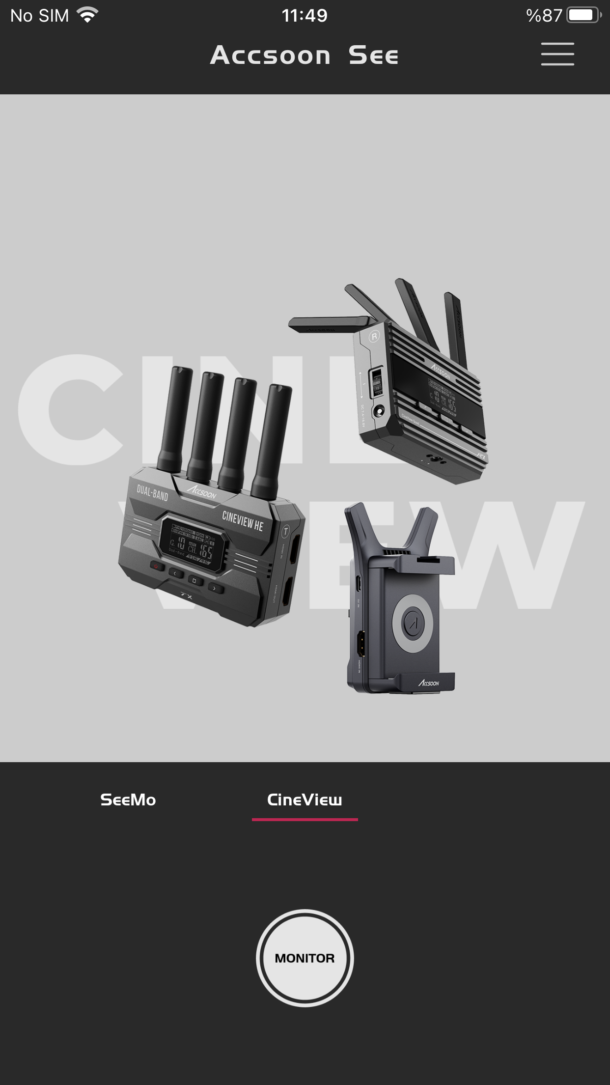 - - AccsoonSEE uygulamasına tıklayın açılan ekranda Cineview ve daha sonra Monitor simgesine tıklayın.